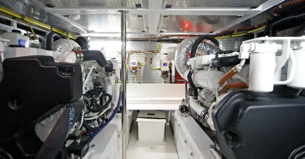 Noise and refinement levels are greatly enhanced by a new proprietary underwater exhaust and a shaft system that isolates the engines from the propeller thrust, allowing much softer engine mounts to be used.